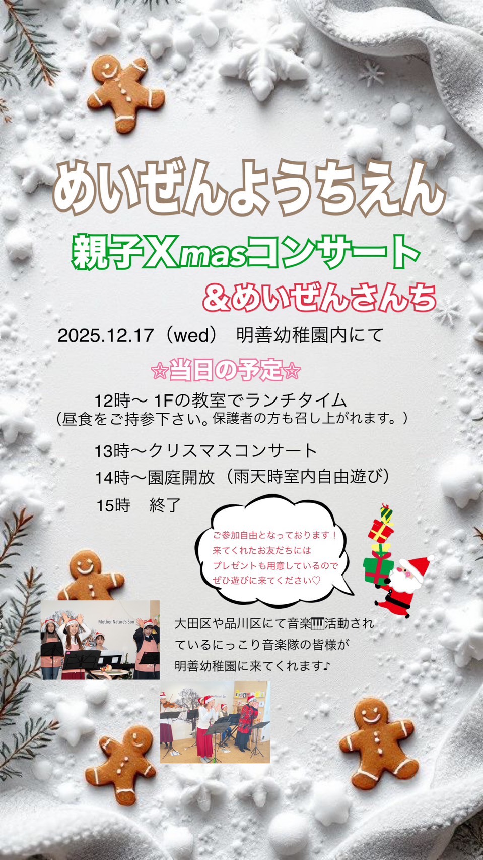 めいぜんようちえん親子クリスマスコンサートを開催します!