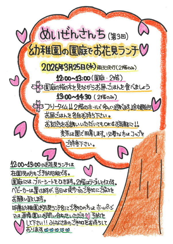幼稚園のお庭にて、みんなで楽しく≪お花見ランチ≫しませんか?
