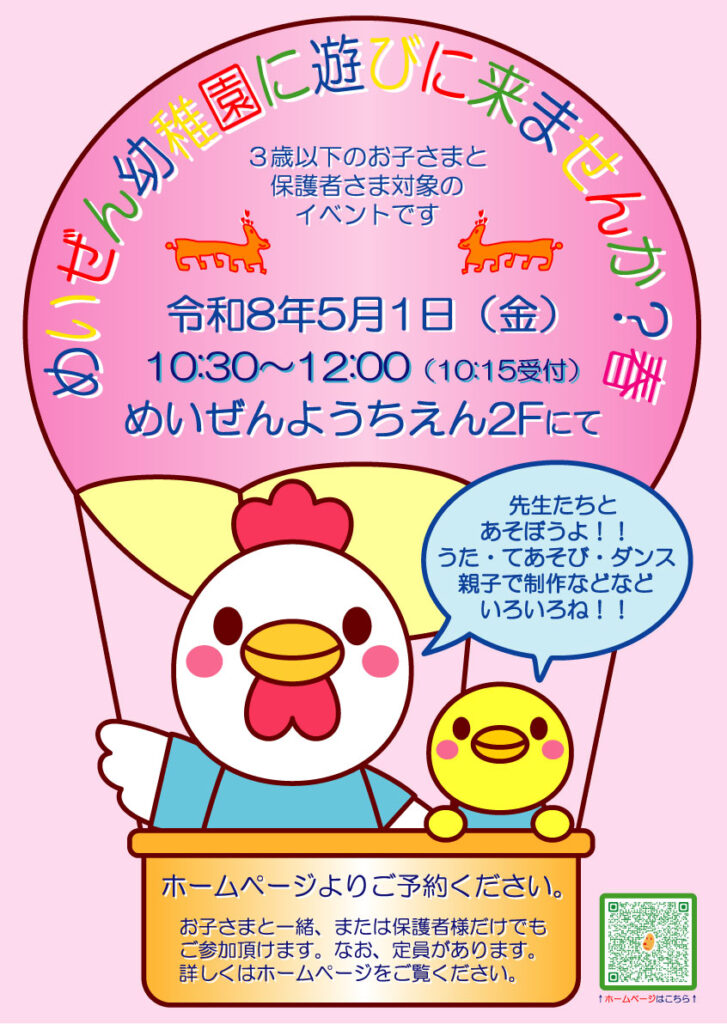 令和8年5月1日(金)、めいぜん幼稚園に遊びに来ませんか?
