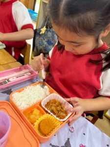 楽しく食べているうちに、好き嫌いのある子もお友だちが食べるのを見ていると、意外と(無理にではなく)食べられるようになるものです。カロリー計算された給食を食べることにより、バランスの良い食事が摂れます。
